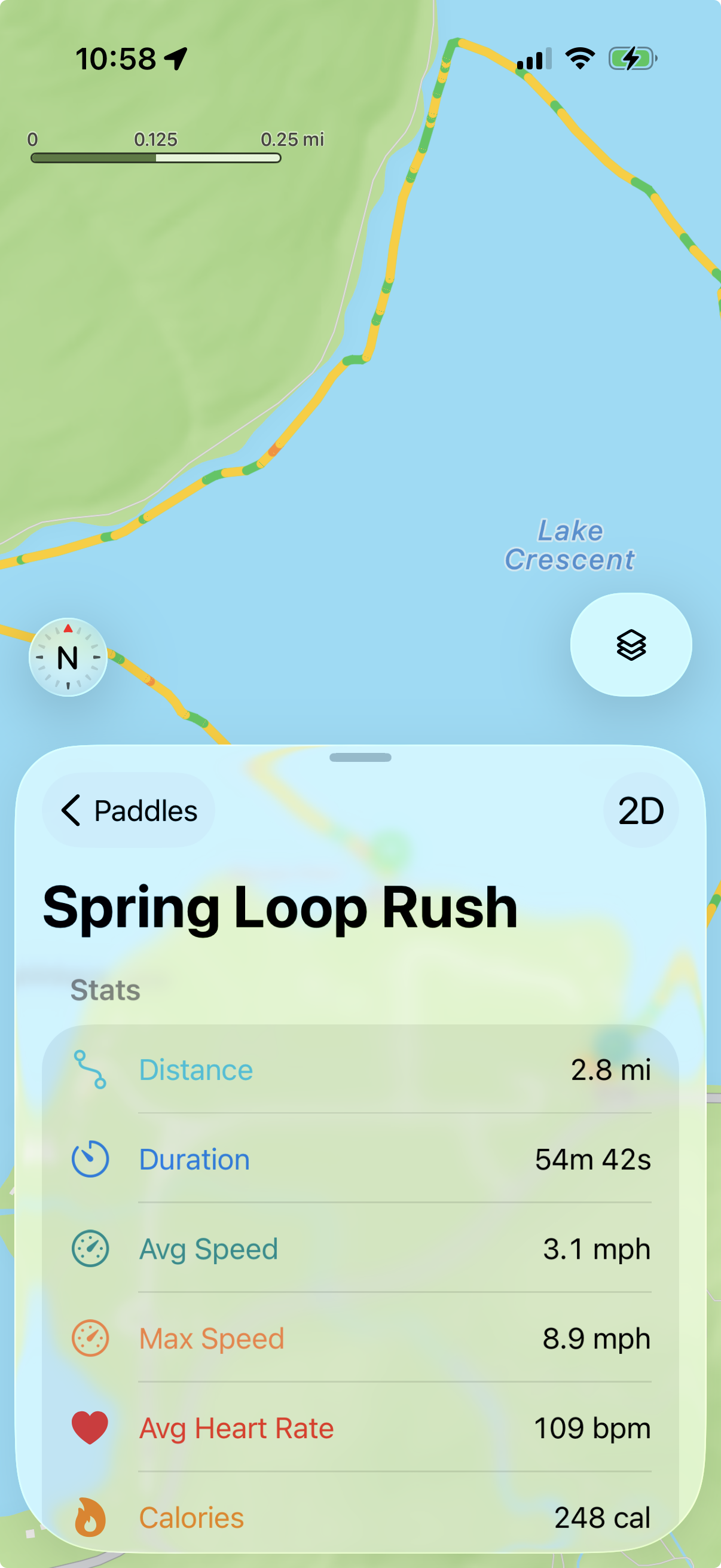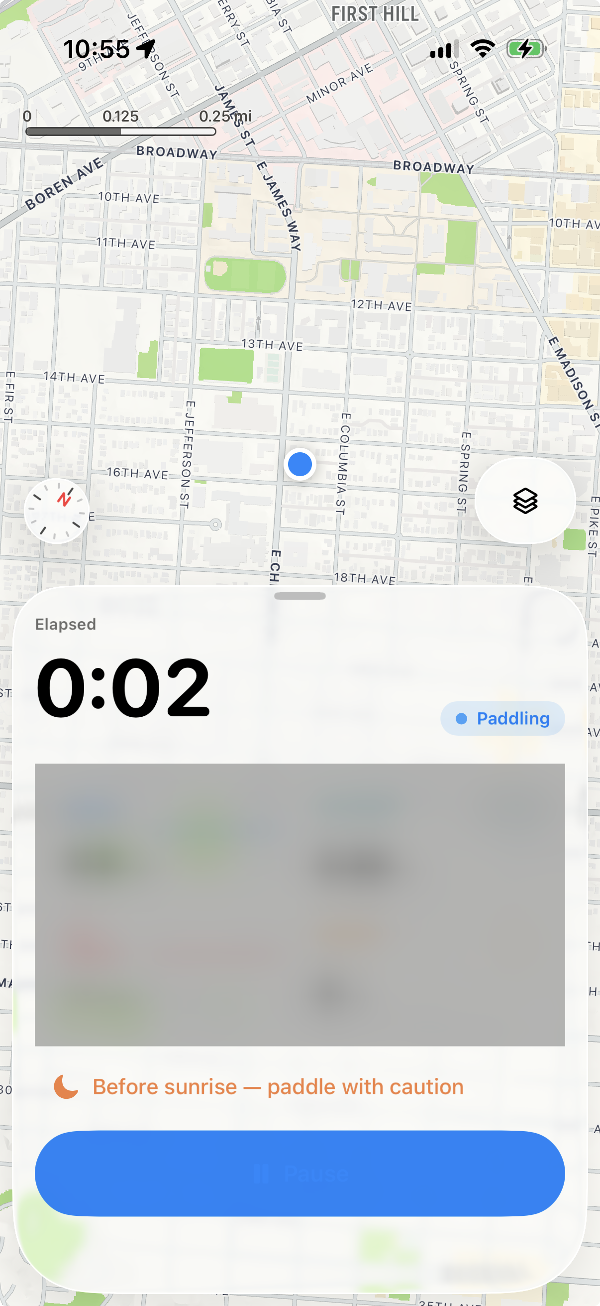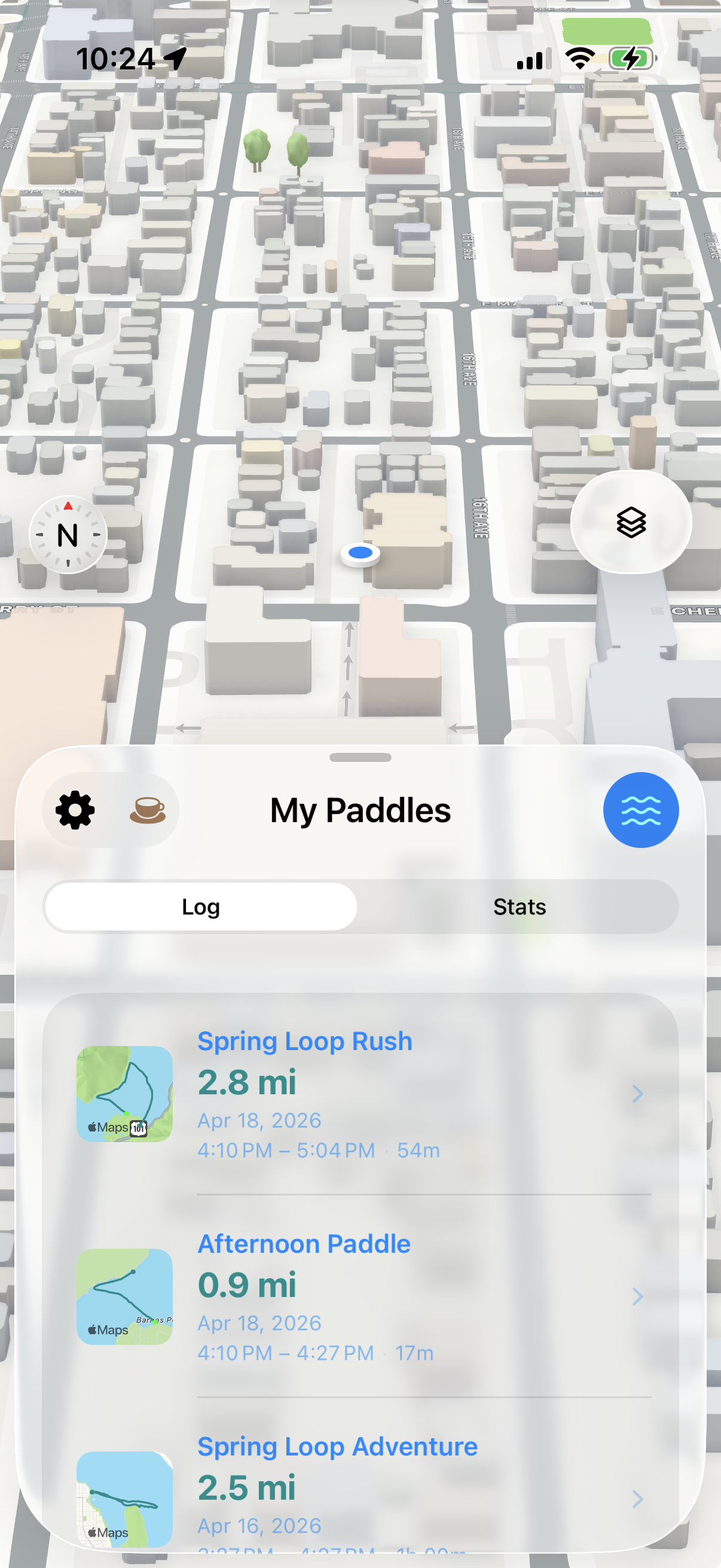 A quietly powerful companion for kayakers and paddleboarders — built natively for iOS 26 with Liquid Glass, HealthKit, and routes that read at a glance.